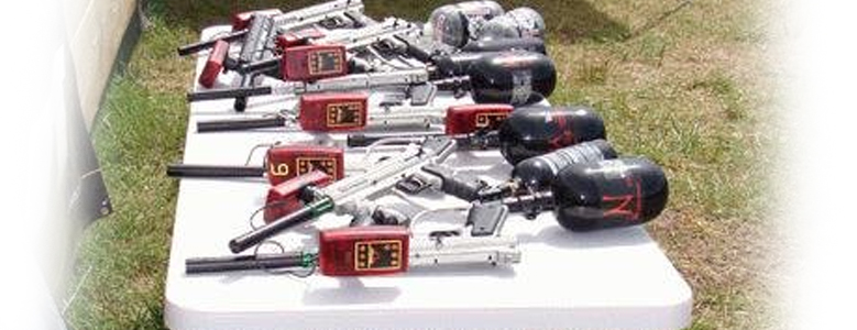 Paintball laser tag is like playing regular paintball but without the paint. The laser unit attaches right to a paintball marker and senses and records "hits". Each time a player gets a hit on another player the laser system announces it to all players in range. All of the equipment syncs with our computer, keeping track of wins and losses. Different games can be played just as in real paintball, capture the flag, free for all, etc.